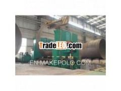 W11S-50*3500 Three roller hydraulic steelplate rollingmachine STANDARD FEATURES OF THE UPPER ROLLER UNIVERSALPLATE ROLLING MACHINE 1. Highprecision end pre-bending2. NC control,high productivity3. Excellentproduct precision4. Integralstructure, simple, easy to move the foundation5.Safety6. Rich bendingshapes ADVANTAGES1.Rollingproducts straightness, upper roll set drum-shaped, with side rollerregulation, it can rolling2.Highstraightness3.Products fromthin to thick plate, ensure the following operations weldingsmoothly, guarantees welding quality4.Use the rearbending process, eliminate curved toward the front of the dorsalhorn, products roundness5.Use directpressure on the end of the materials, it is convenient to controlthe remaining straight edge Parameters:Model upper roller pressure(tons) Plate Max.thickness(mm) Plate width(mm) Diameter of upper roller(mm) Diameter of lower roller(mm) Central distance(mm) W11S-45x3000 540 45 3000 590 340 610 W11S-40x4000 540 40 4000 630 340 610 W11S-36x5000 540 36 5000 670 340 610 W11S-32x6000 540 32 6000 700 340 610 W11S-55x3000 610 55 3000 620 360 650 W11S-45x4000 610 45 4000 660 360 650 W11S-40x5000 610 40 5000 700 360 650 W11S-36x6000 610 36 6000 730 360 650 W11S-60x3000 690 60 3000 650 380 700 W11S-80x3000 1050 80 3000 770 460 880 W11S-100x3000 1350 100 3000 860 PLC: DELAT
